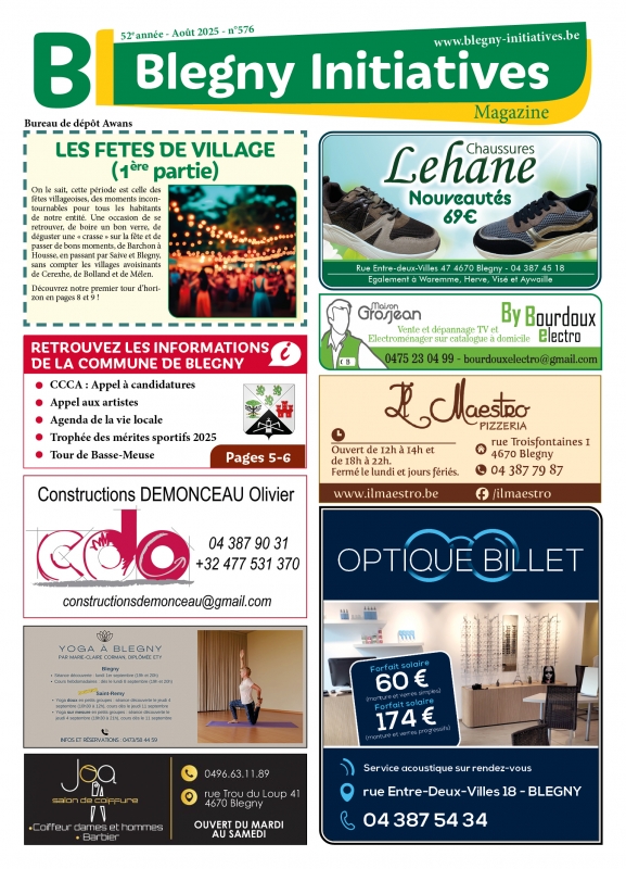 On le sait, cette période est celle des fêtes villageoises, des moments incontournables pour tous nos habitants de l’entité. Une occasion de se retrouver, de boire un bon verre, de déguster une «crasse » sur la fête et de passer de bons moments, de Barchon à Housse, en passant par Saive et Blegny, sans compter les villages avoisinants de Cerexhe, de Bolland et de Mélen....